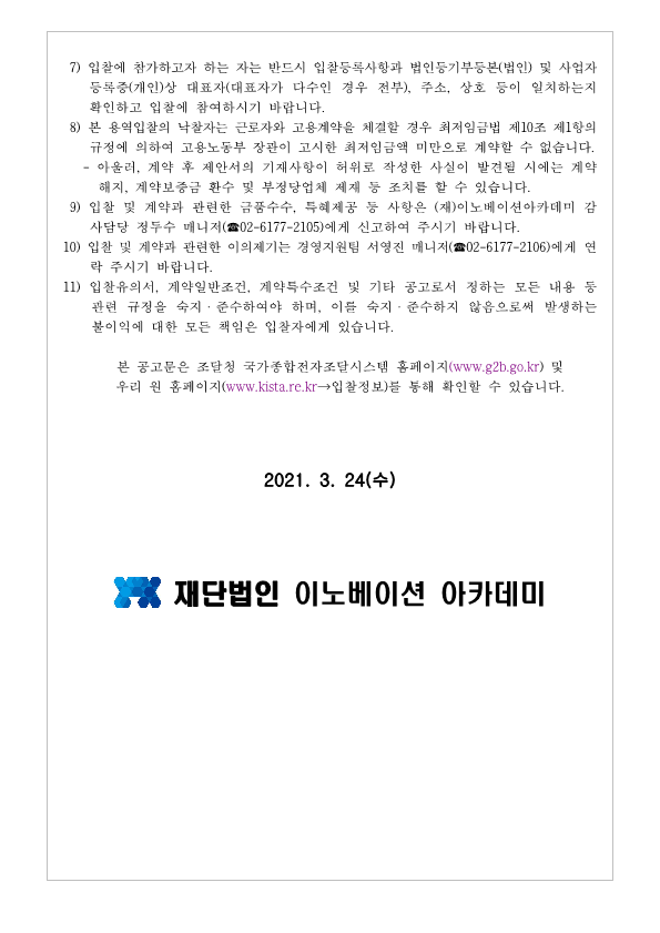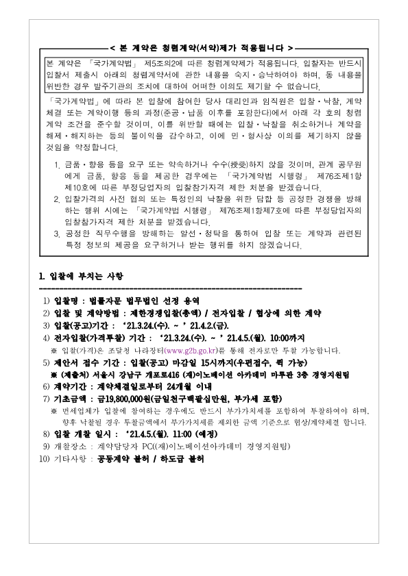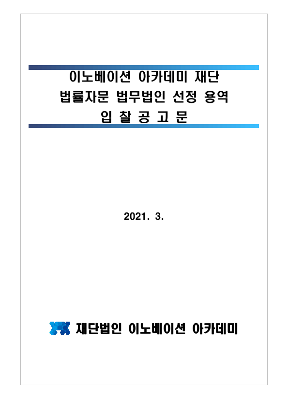 알림 입찰공고 재단동정 보도자료 공지사항 채용공고 입찰공고 설명회 신청 뉴스레터 신청 이노베이션 아카데미 재단 법률자문 법무법인 선정 용역 입찰 재공고 작성일 : 2021-03-24 09:11:26 조회 : 5410 1616544685248_이노베이션 아카데미 재단 법률자문 법무법인 선정 용역 입찰 재공고.zip 이전 이전 게시물 보기 다음 다음 게시물 보기 목록