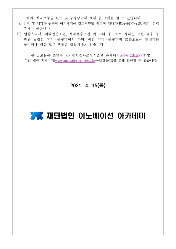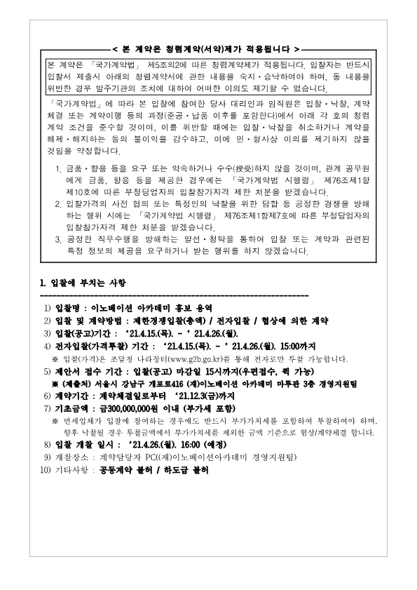 알림 입찰공고 재단동정 보도자료 공지사항 채용공고 입찰공고 설명회 신청 뉴스레터 신청 이노베이션 아카데미 재단 홍보 용역 입찰 재공고 작성일 : 2021-04-15 09:07:25 조회 : 5160 1618444084043_재공고.zip 이전 이전 게시물 보기 다음 다음 게시물 보기 목록