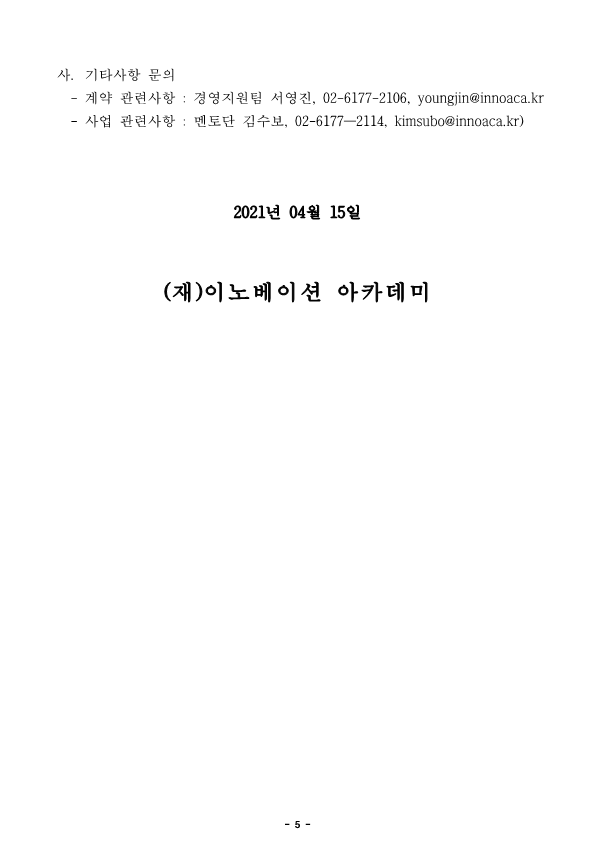 알림 입찰공고 재단동정 보도자료 공지사항 채용공고 입찰공고 설명회 신청 뉴스레터 신청 이노베이션 아카데미 재단 AI 교육훈련용 GPU 서버 구매 입찰 공고 작성일 : 2021-04-15 09:08:34 조회 : 5665 1618445313222_이노베이션 아카데미 재단 AI 교육훈련용 GPU 서버 구매 입찰 공고.zip 이전 이전 게시물 보기 다음 다음 게시물 보기 목록